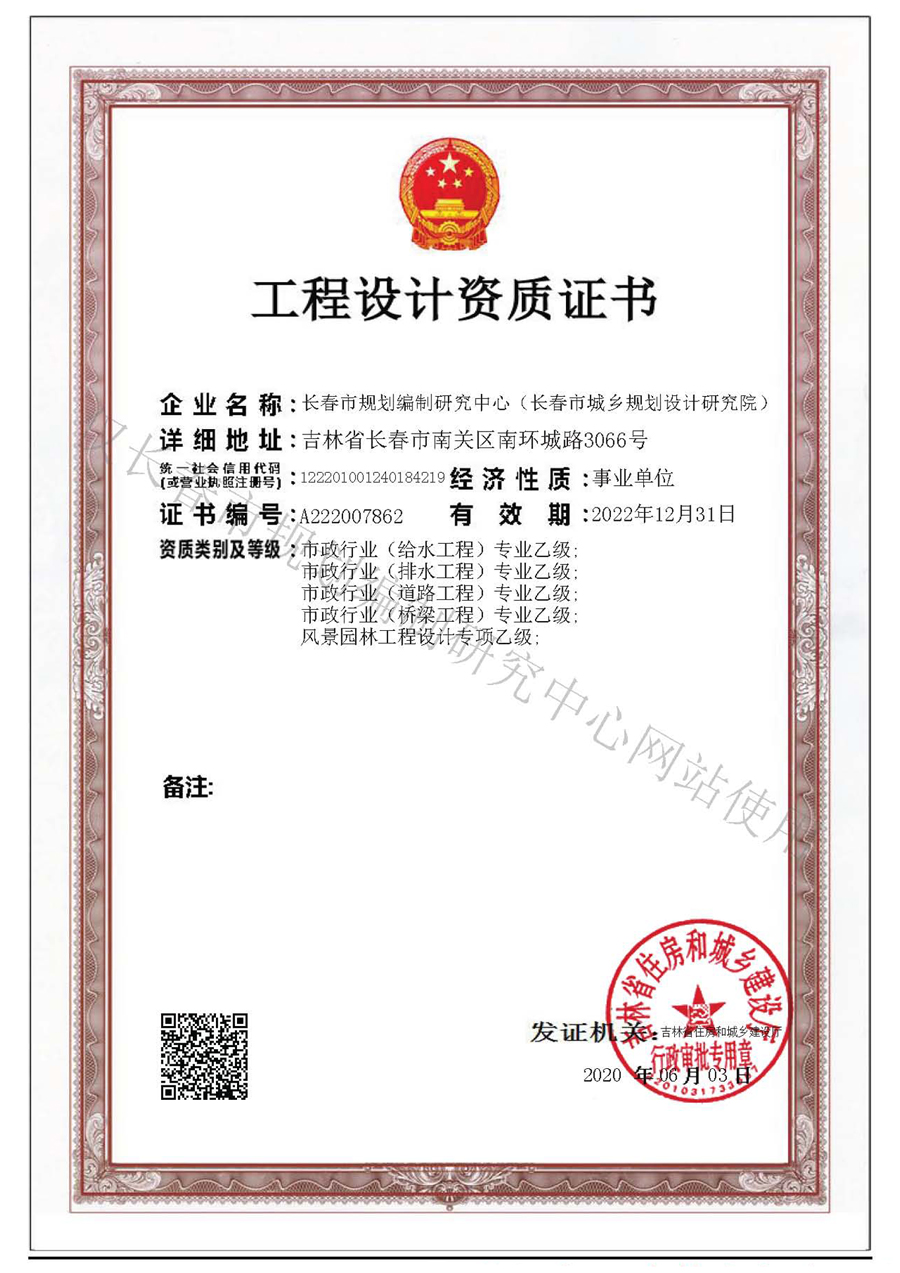 吉林省士地规划乙级资质证书