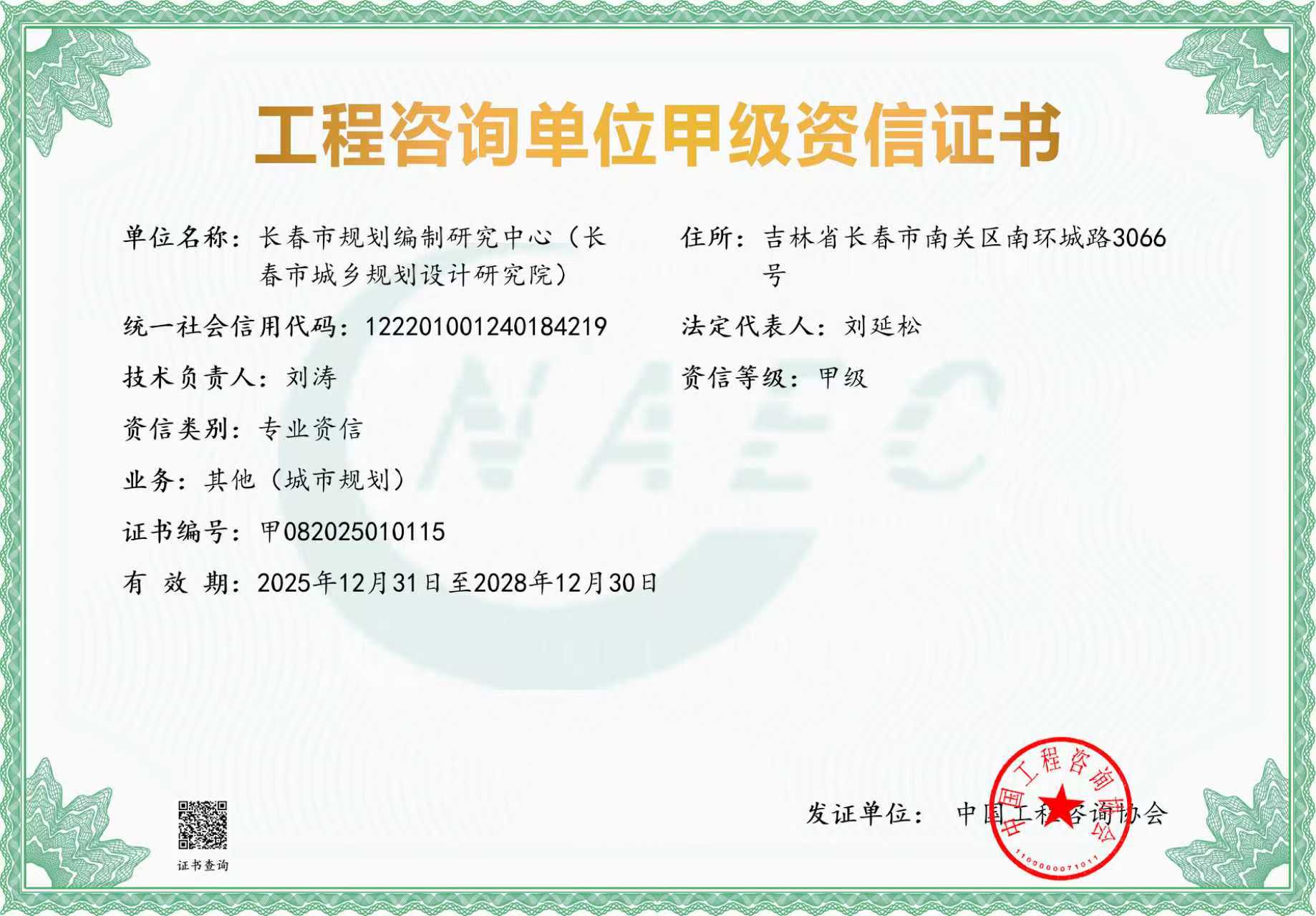 工程咨询单位甲级资信证书