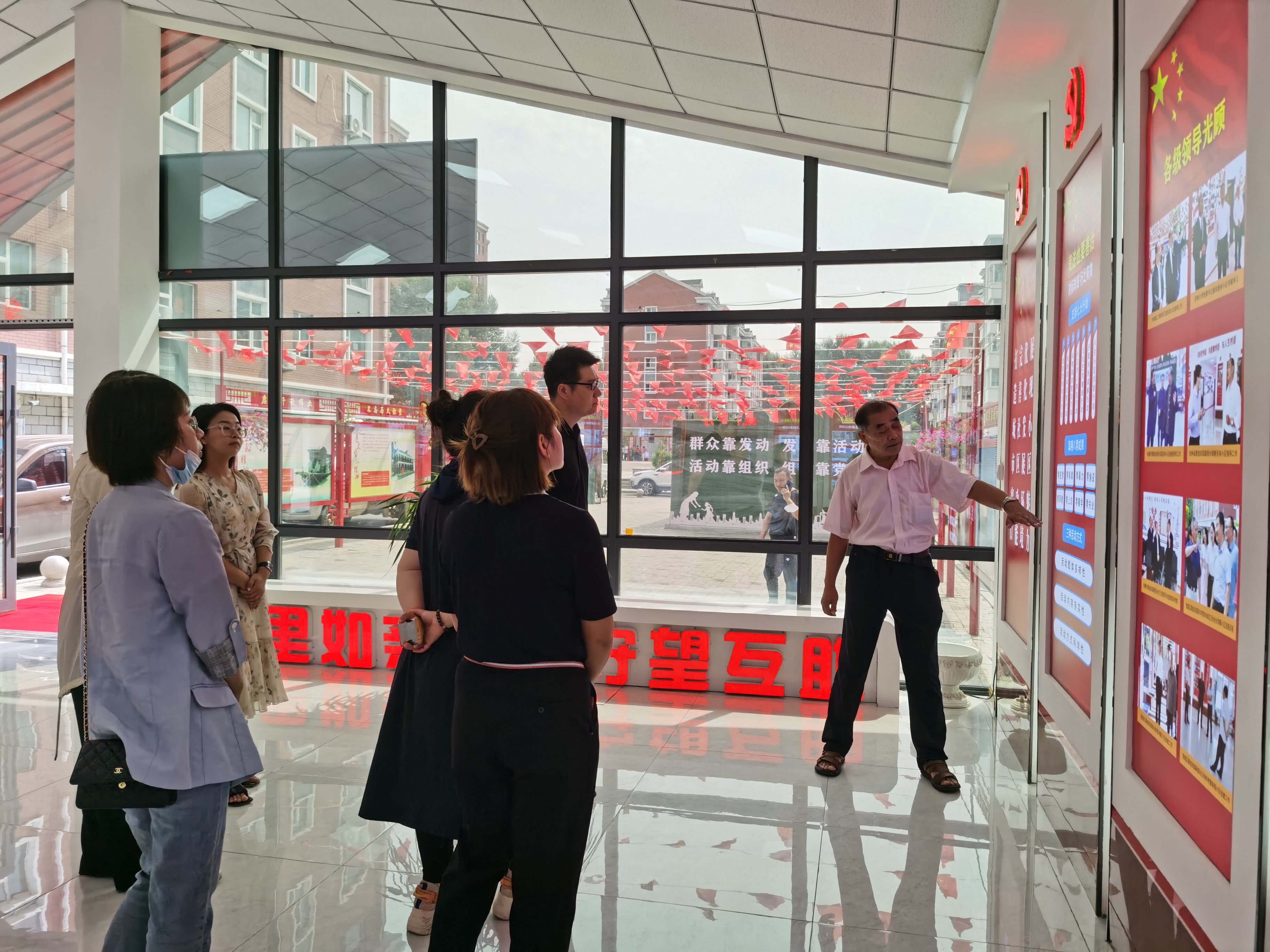 上午,编研中心第四党支部先来到了柳影街道富丰家园小区,与柳影街道共同开展党建共建活动。首先探望了“国旗奶奶”张秀英,了解了富丰家园小区中一二三代旗杆的来历和升旗仪式的历史和由来。随后由一名老党员带领参观了网格党群服务站,介绍了社区支部在这个小区中的积极作用和爱国情怀的输出,在这里感受到整个小区无论党员还是群众都是积极向上的满满正能量,看到了老旧小区也能焕发出的新活力新面貌。用他们的话说“升旗仪式虽是自发的,但是整个仪式的那种仪式感和庄严感仿佛我们身处北京天安门”。这样的仪式、这样的红色爱国文化值得我们学习。