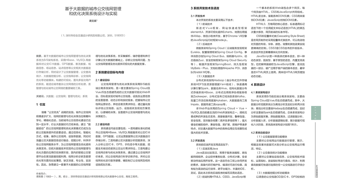 基于大数据的城市公交线网管理和优化决策系统设计与实现