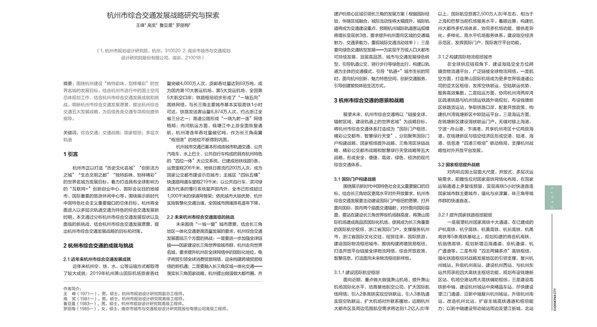 杭州市综合交通发展战略研究与探索