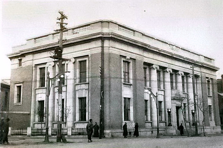 日本横滨正金银行长春支店新址,位于日本桥通(今胜利大街),1922年开工建设,同年建成使用。建筑由中村与资平设计,日本清水组施工,采用西洋古典主义建筑风格,为三层砖混结构,土黄色瓷砖贴面,其中地下一层,地上两层,室内地下为金库,一楼为营业室,二楼为经理室,建筑面积为1534平方米。