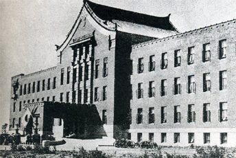 伪满第六厅舍,位于顺天大街(新民大街)与神泉路(今清华路)交汇处东南侧。该建筑由日本建筑师相贺兼介设计,1935年动工建设,1936年竣工。现为吉林大学白求恩医学部。图名:伪满司法部历史照片 (来源:...