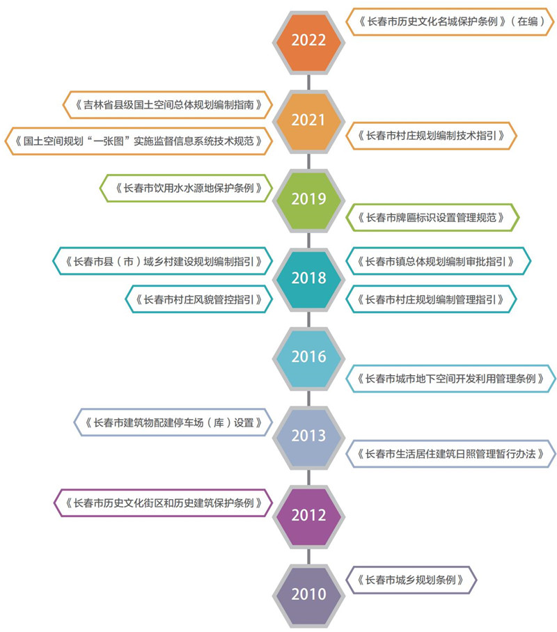 中心历来注重规划成果向地方标准、行业规范等提升转化,并为地方相关法律法规制定提供技术支持,在城市各个发展时期分别制定了与城市发展建设相符合的标准规范。近年来,中心业务进一步拓展,综合水平进一步提升,参与制定的标准规范种类越来越丰富、层次越来越高。国家层面,参与了《国土空间规划“一张图”实施监督信息系统技术规范》的制定;省级层面,主持了《吉林省县级国土空间总体规划编制指南》的制定;市级层面,陆续完成了《长春市饮用水水源地保护条例》《长春市历史文化街区和历史建筑保护条例》《长春市城市地下空间开发利用管理条例》等20余项法规、条例、规范、标准、技术规定的制定工作,在为政府、社会、市民提供优秀规划成果的同时,也积极为国家和地方标准规范制定工作贡献了力量。