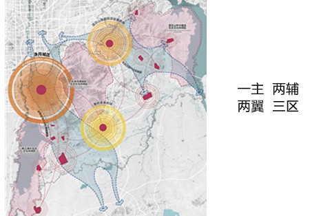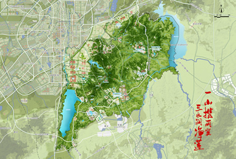 5.塑造影都内涵的特色景观体系:突出生态人文特质,“做岸、建园、环湖、做岛”,形成“一脉多廊,四核多点,山水交织,林城相融”的生态安全格局,打造“一山携两翼、三水润净莲”的总体空间意向。创新美学设计理念,形成7大风貌区,塑造独特地域和时代风尚。