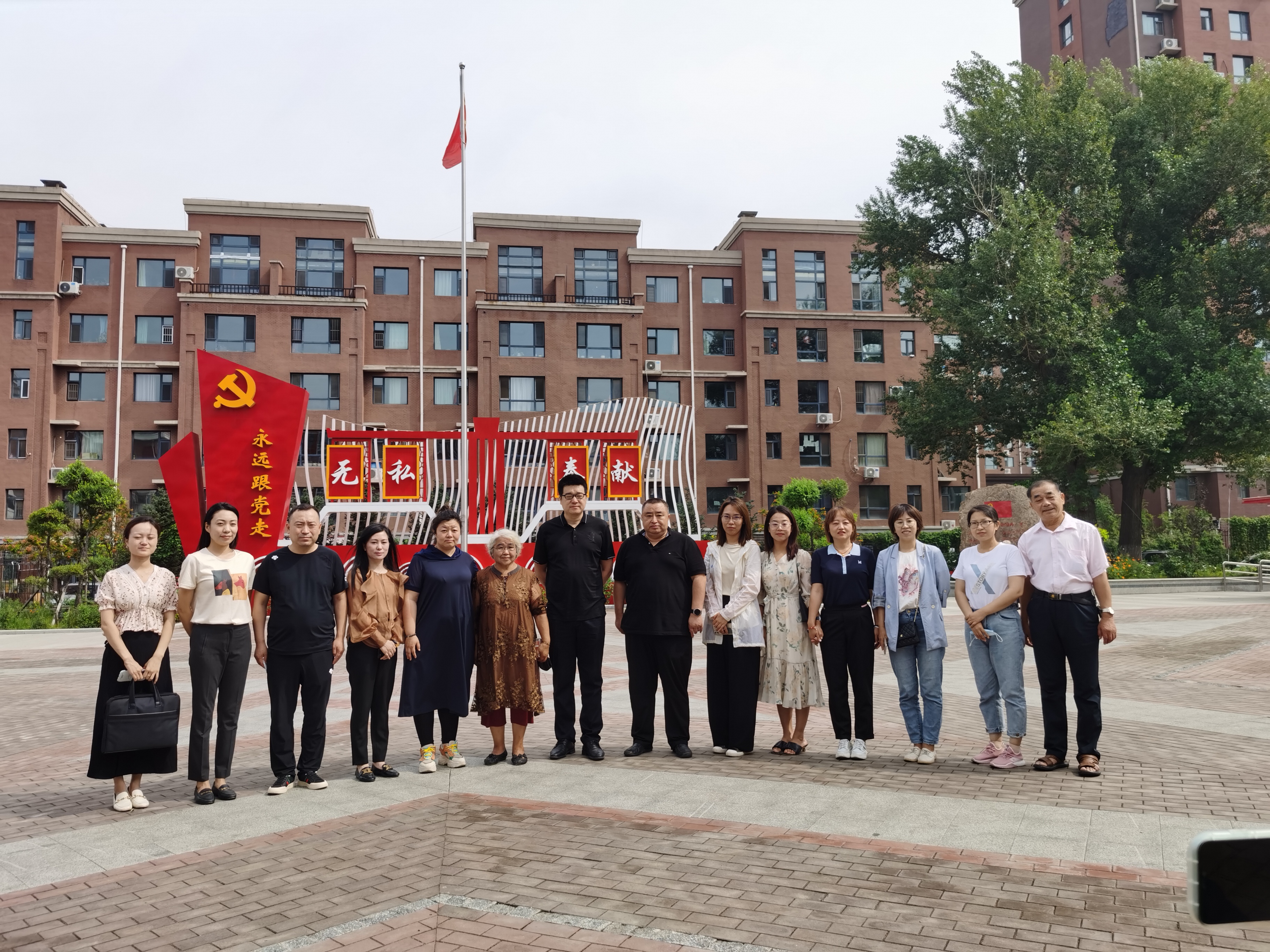 上午,编研中心第四党支部先来到了柳影街道富丰家园小区,与柳影街道共同开展党建共建活动。首先探望了“国旗奶奶”张秀英,了解了富丰家园小区中一二三代旗杆的来历和升旗仪式的历史和由来。随后由一名老党员带领参观了网格党群服务站,介绍了社区支部在这个小区中的积极作用和爱国情怀的输出,在这里感受到整个小区无论党员还是群众都是积极向上的满满正能量,看到了老旧小区也能焕发出的新活力新面貌。用他们的话说“升旗仪式虽是自发的,但是整个仪式的那种仪式感和庄严感仿佛我们身处北京天安门”。这样的仪式、这样的红色爱国文化值得我们学习。