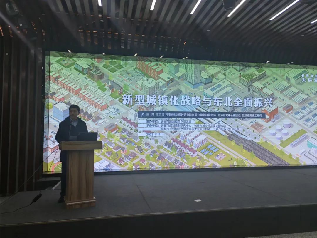 2023年11月1日下午,长春规划大讲堂(第41期)在长春规划展览馆4楼报告厅召开,本期讲堂邀请北京清华同衡规划设计研究院有限公司副总规划师、总体研究中心副主任汪淳,以“新型城镇化战略与东北全面振兴”为主题做了演讲。本期讲堂由长春市规划编制研究中心总规划师刘彤起主持,长春市规划和自然资源局相关处室、城区及开发区分局相关负责人,长春市规划编制研究中心各部门负责人及工作人员,长春市城乡规划展览馆相关工作人员参加了会议。