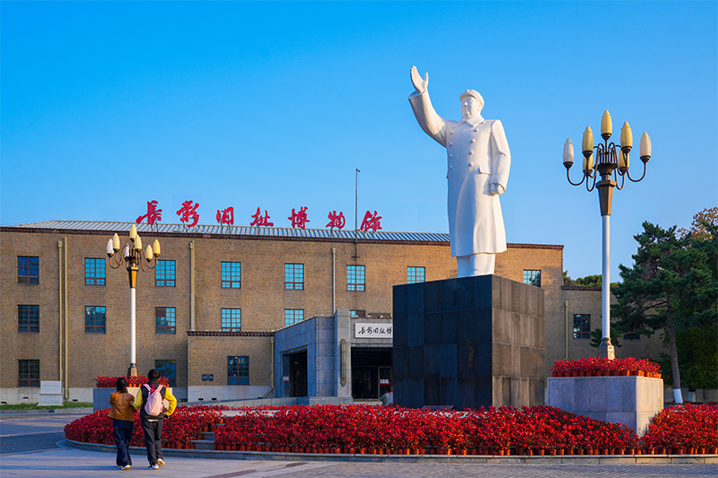长影旧址博物馆及门前由群众自发建立的毛主席雕塑