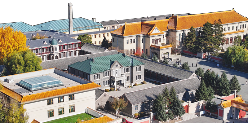 伪满皇宫历史文化街区北高南低,建筑群依坡就势,坐北朝南,不同的功能分区呈现出不同的空间形态,东西两侧开阔而规则,中部由各具特色的建筑排列围合,形成了前庭后寝、穿宅过院、曲径通幽、回廊相连的紧凑而有序的院落空间。