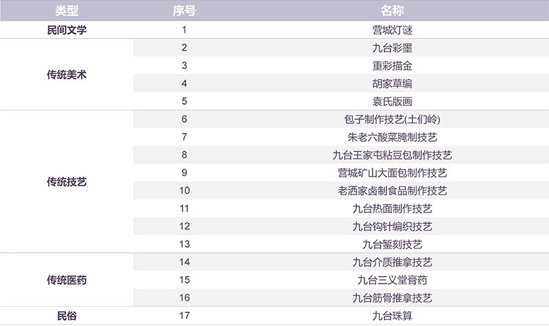 2024年4月,九台区公布第一批区级非物质文化遗产17项。