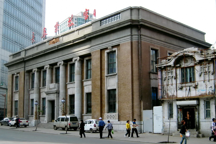 日本横滨正金银行长春支店新址,位于日本桥通(今胜利大街),1922年开工建设,同年建成使用。建筑由中村与资平设计,日本清水组施工,采用西洋古典主义建筑风格,为三层砖混结构,土黄色瓷砖贴面,其中地下一层,地上两层,室内地下为金库,一楼为营业室,二楼为经理室,建筑面积为1534平方米。