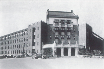 伪满第六厅舍,位于顺天大街(新民大街)与神泉路(今清华路)交汇处东南侧。该建筑由日本建筑师相贺兼介设计,1935年动工建设,1936年竣工。现为吉林大学白求恩医学部。图名:伪满司法部历史照片 (来源:...
