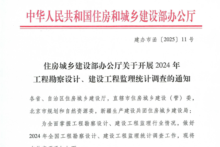 为贯彻落实住房和城乡建设部《关于开展2024年工程勘察设计、建设工程监理统计调查的通知》工作要求,我单位严格按照住建部发布的工程勘察设计、建设工程监理统计调查制度原则和要求,积极落...